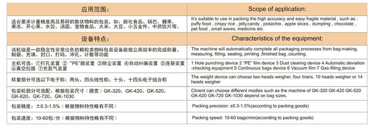 广泛适用于食品类、五金类、农产品类、日化类、医药类等多个行业领域的颗粒类、不规则类产品的包装